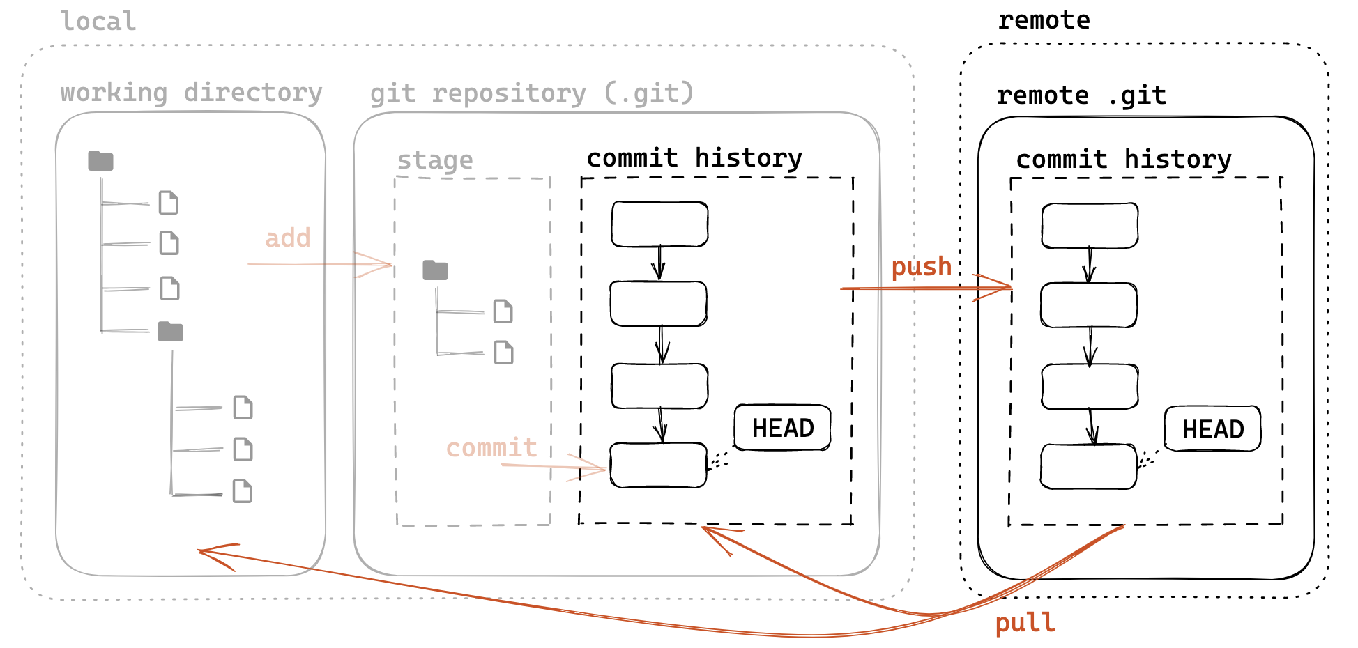 远程版本库也是一个普通的 Git 版本库,只不过由于不需要工作目录和暂存区,所以一般使用裸版本库。