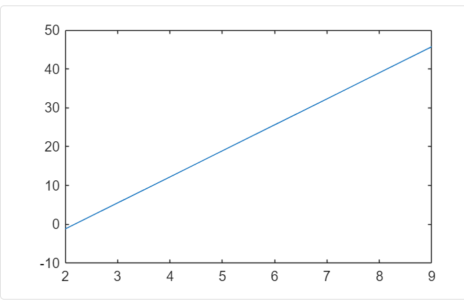 可以看到,p是一个1*2的向量,分别为一次项系数和常数项。使用y=polyval(p,x)即可将x通过该多项式映射到y